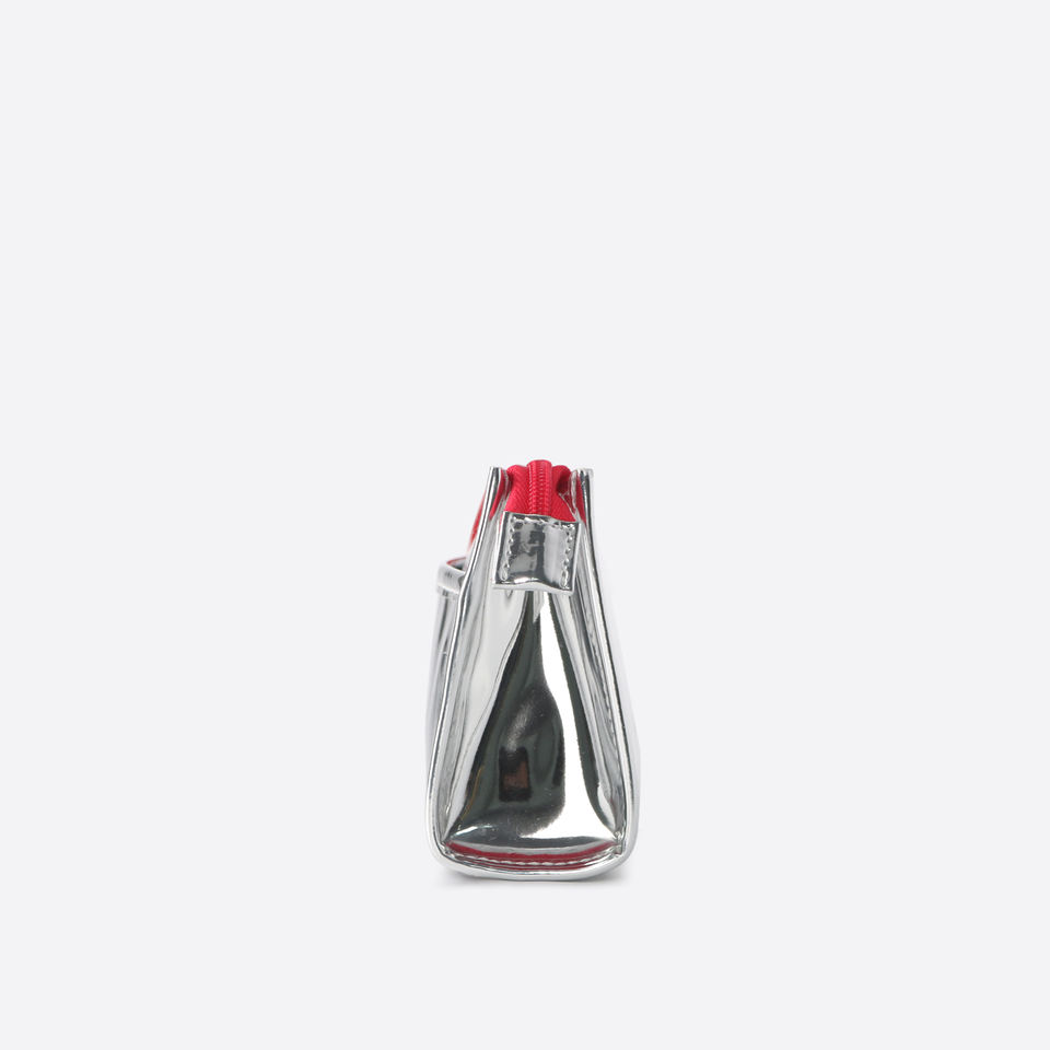 Bolsa de Maquillaje Portátil Resistente al Agua y Fácil de Limpiar, Estuche de Belleza Plateado Futurista