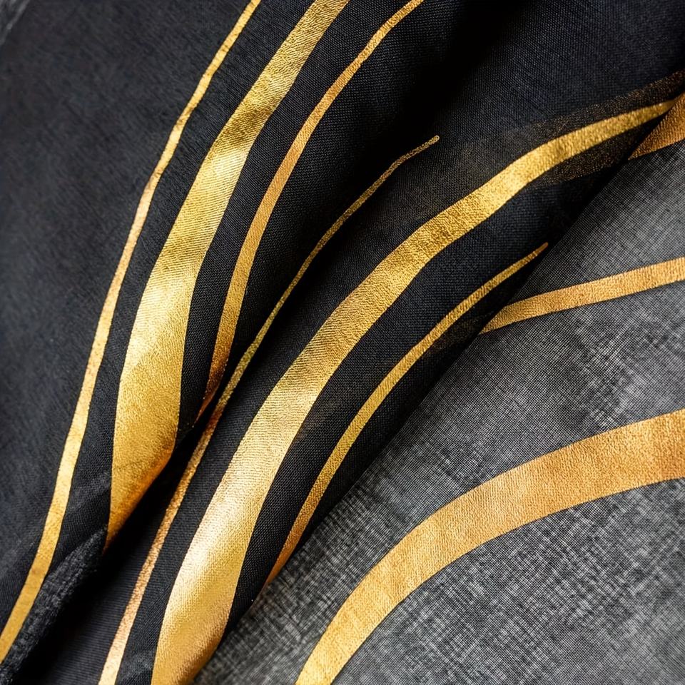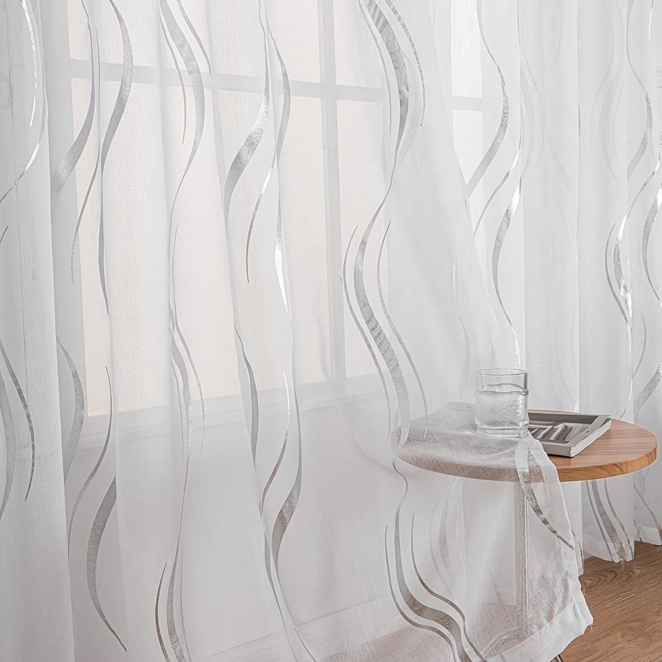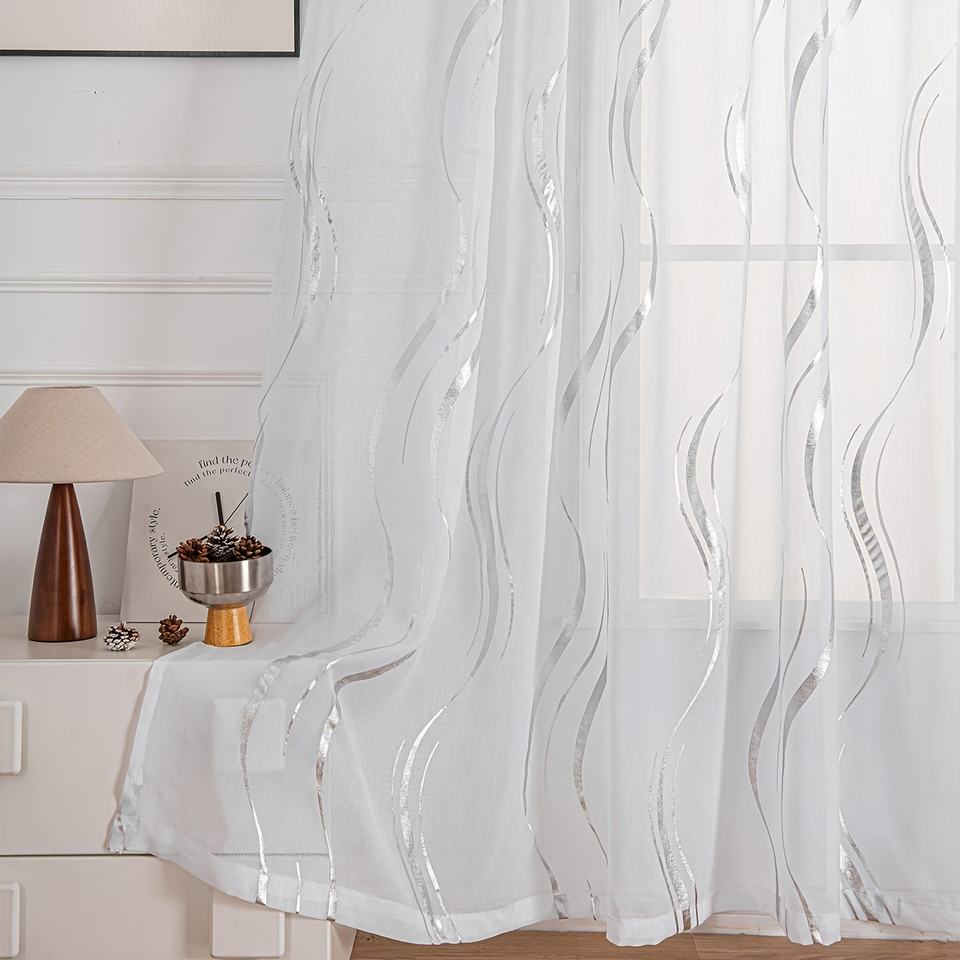 Cortinas transparentes con estampado de ondas de agua, diseño en blanco y negro con estampado en caliente dorado/plateado, tratamiento de ventana elegante para decoración del hogar