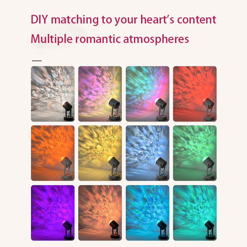 Lámpara de Mesa con Efecto de Ondas de Agua, Luz Nocturna Pequeña, Luz Ambiental Giratoria para Cabecera, Decoración para Dormitorio, Proyección de Netflix en Vivo