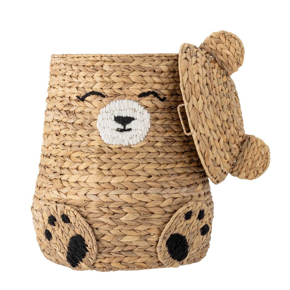 Tamaño: D15,7 x H22,4 pulgadas:Cesta de jacinto de agua con tapa tejida en forma de oso.