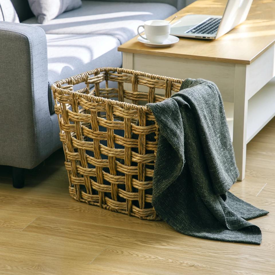 Tamaño: L19 x W16 x H16 pulgadas:Cesta de jacinto de agua tejida con malla cuadrada suelta