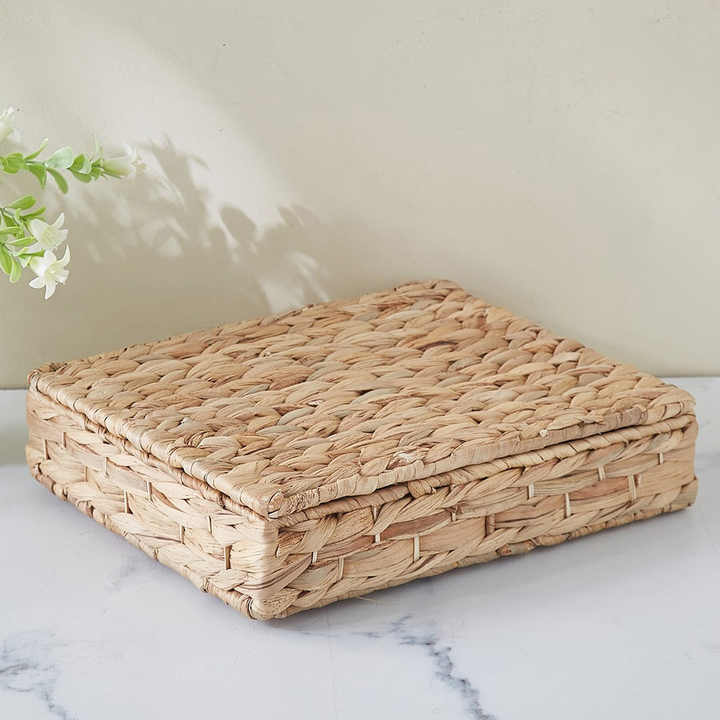 Caja de almacenamiento de jacinto de agua en varios tamaños para la venta, cajas sostenibles, contenedor decorativo con tapa