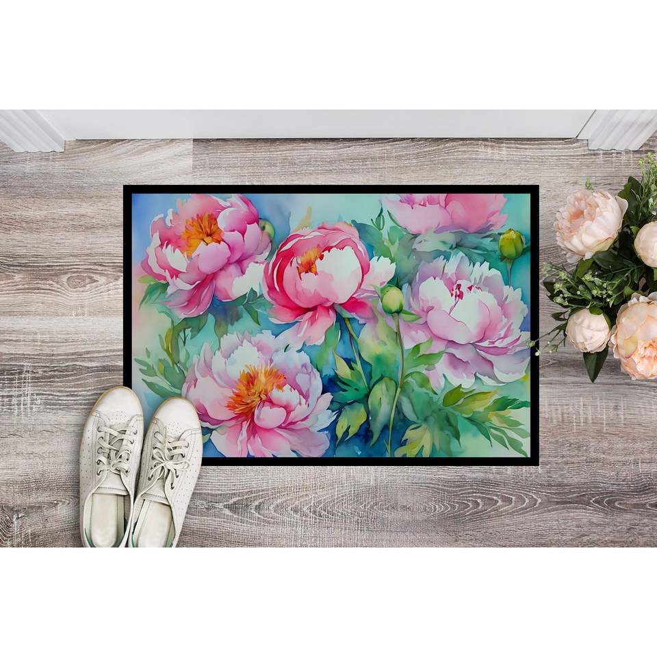 Felpudo de peonías de acuarela antideslizante, lavable, pila baja, 24H X 36W, alfombra de entrada para interiores y exteriores, alfombrilla para puerta delantera para una fácil limpieza