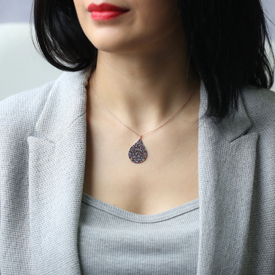 Colgante de Piedra con forma de gota de agua para mujer, joyería de plata de ley 925 hecha a mano turca