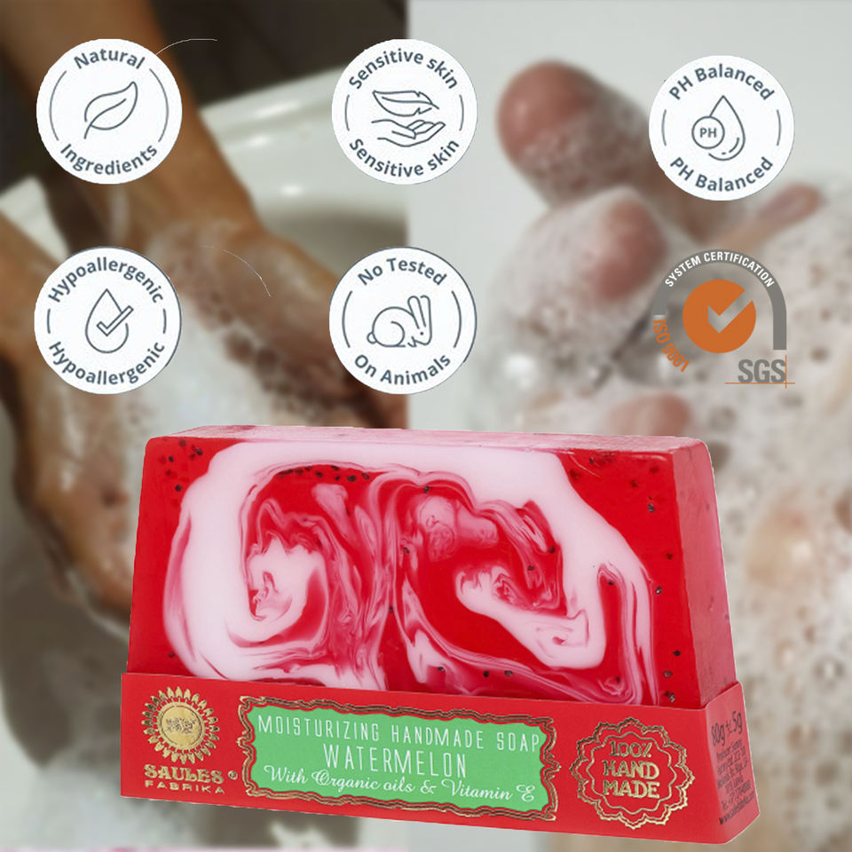 Jabón de Sandía en Barra, Hidratación Fresca, Fórmula para Piel Suave y Limpia, Base de Glicerina, Aceite de Almendras y Oliva, Marca Privada, OEM, Suministro al por Mayor