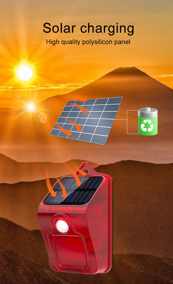 Alarma impermeable solar con sensor PIR de movimiento 100 dB para exterior, sirena inalámbrica con luz para hogar, granja, villa y jardín, alarma de seguridad sonora