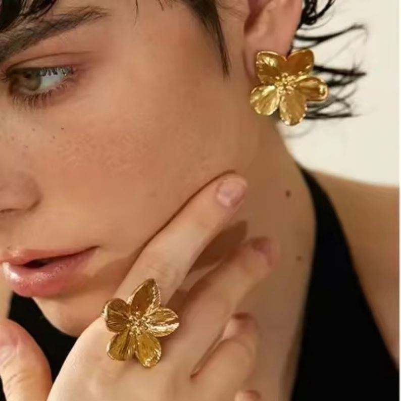 Nombre del producto:Pendientes de anillo abierto grande de flor de acero inoxidable de oro 18K impermeable