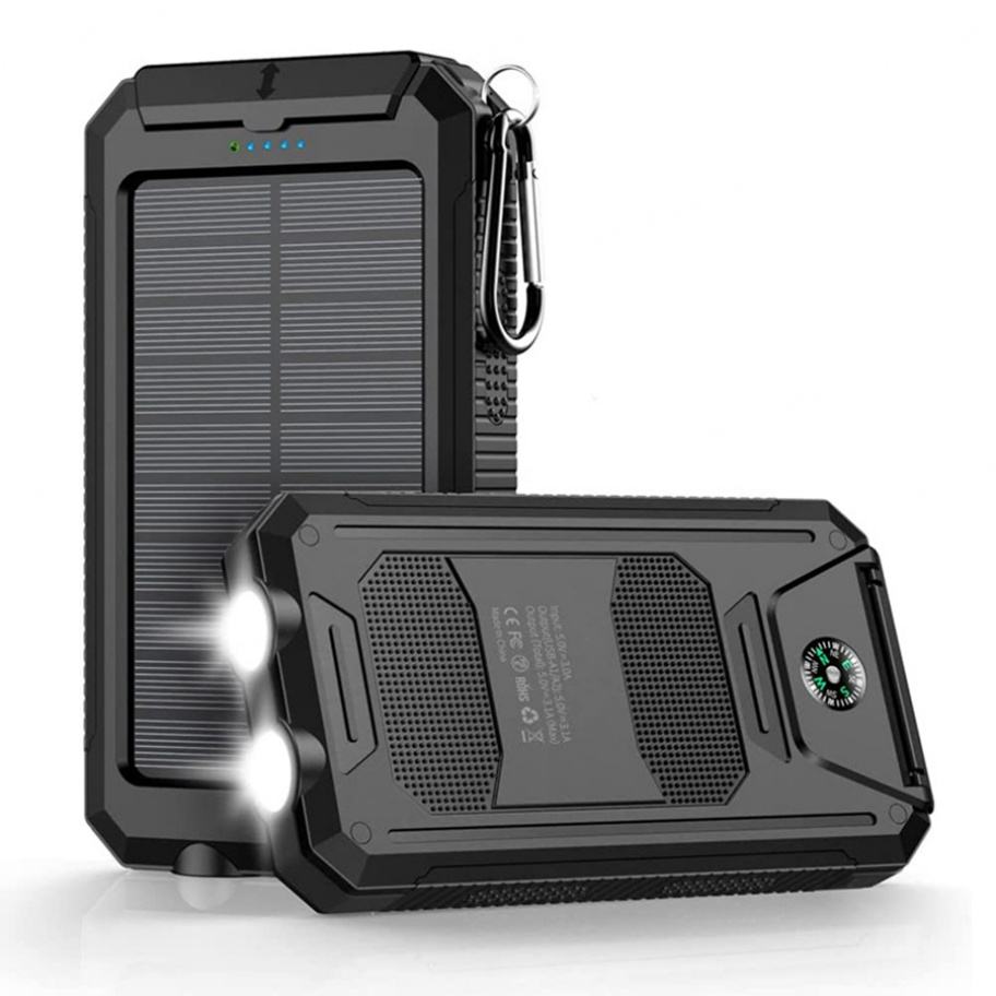Banco de Energía Multifuncional Impermeable de 20000 mAh con Doble USB, Linterna LED, Brújula y Carga Solar
