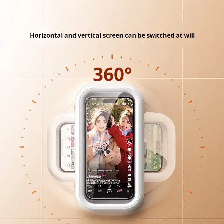 Soporte de teléfono de ducha táctil con pantalla de ángulo ajustable de 360 grados resistente al agua, soporte de teléfono antivaho para montaje en pared