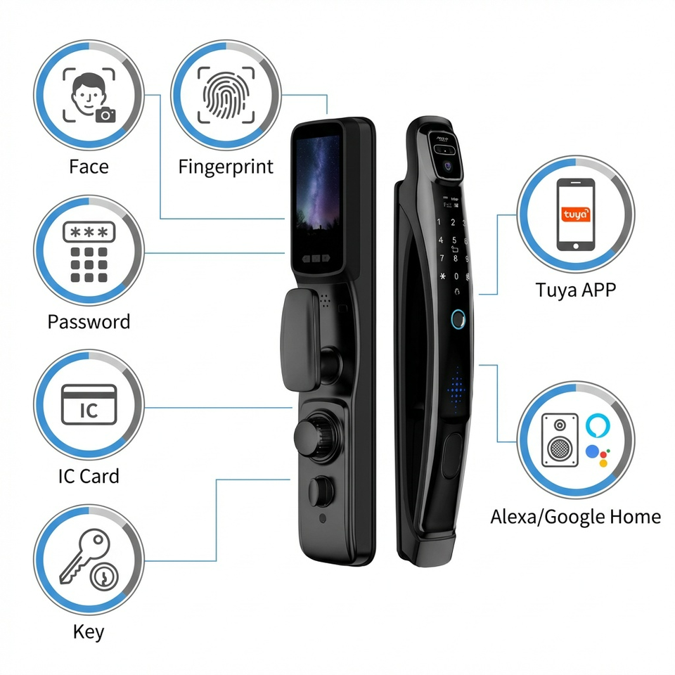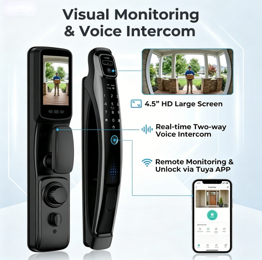 Cerradura Inteligente 3D a Prueba de Agua con Cámara HD, Huella Dactilar/Contraseña/Tarjeta, Compatible con la Aplicación Tuya y la Nube, para Acero/Acero Inoxidable