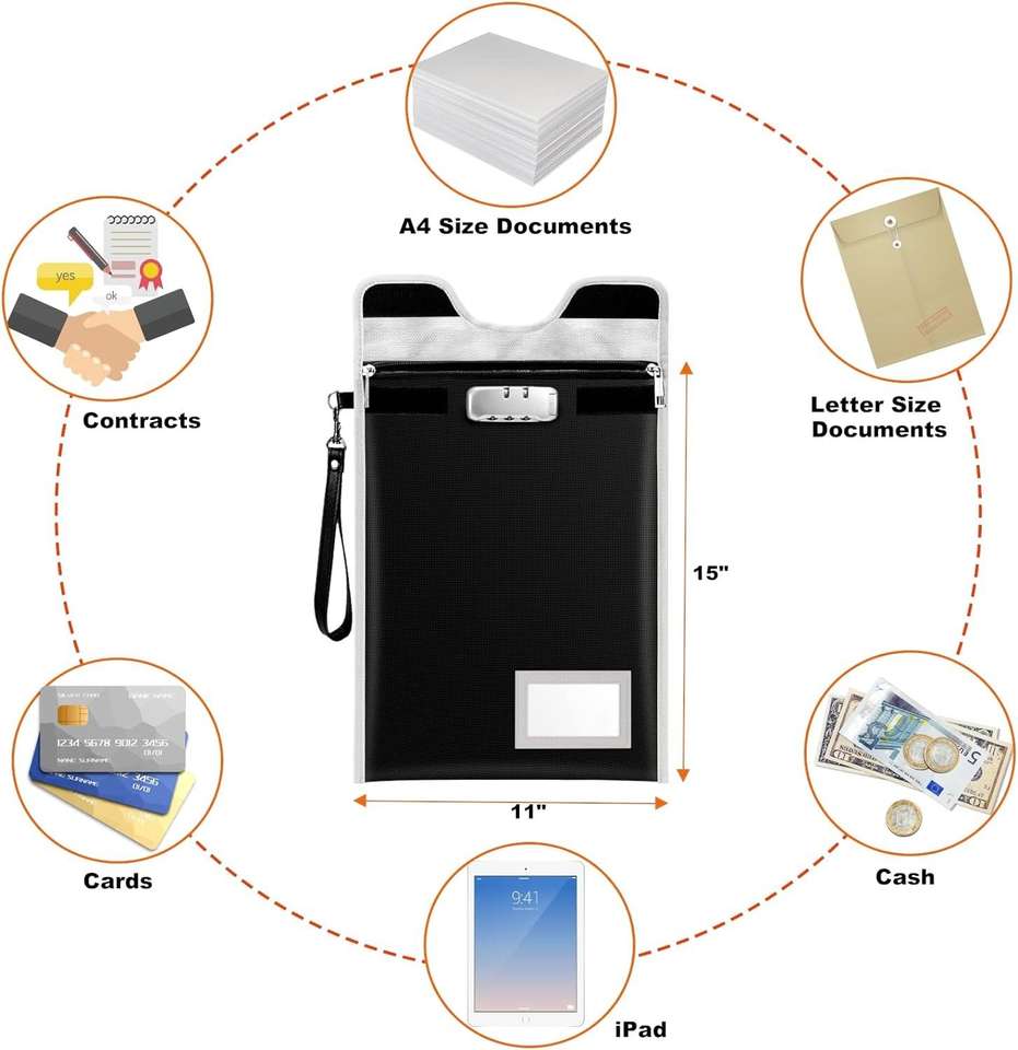 Bolsa ignífuga impermeable para archivos A4, bolsa de dinero con cerradura, bolsa de almacenamiento de documentos con cremallera, bolsa de documentos ignífuga para un almacenamiento seguro