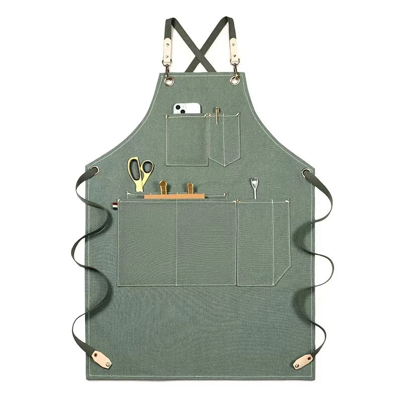 Delantal de cocina de lona impermeable para Chef camarera delantal de algodón impermeable con correas ajustables y bolsillos