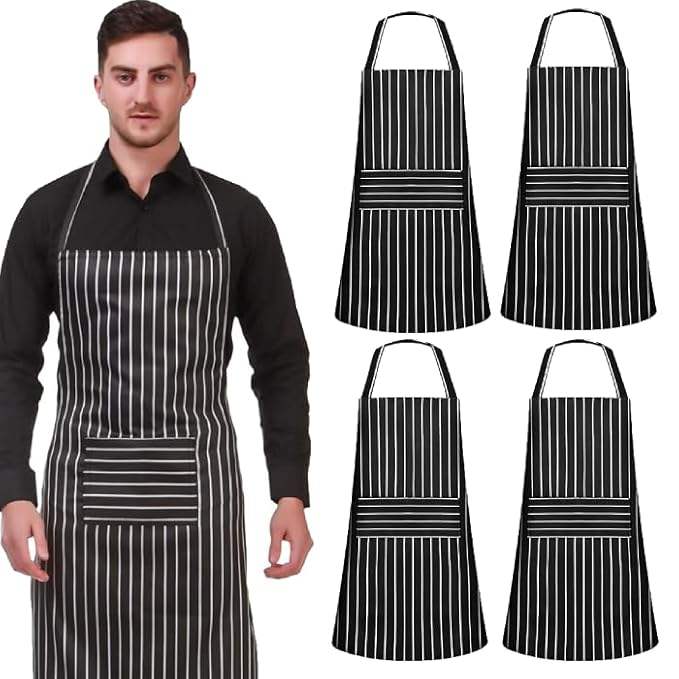Delantal Impermeable con Diseño a Cuadros, con Bolsillo y Correa para el Cuello, para Hombres y Mujeres, para Hotel, Cafetería, Catering, Cocina, Juego de 4 Delantales de Chef
