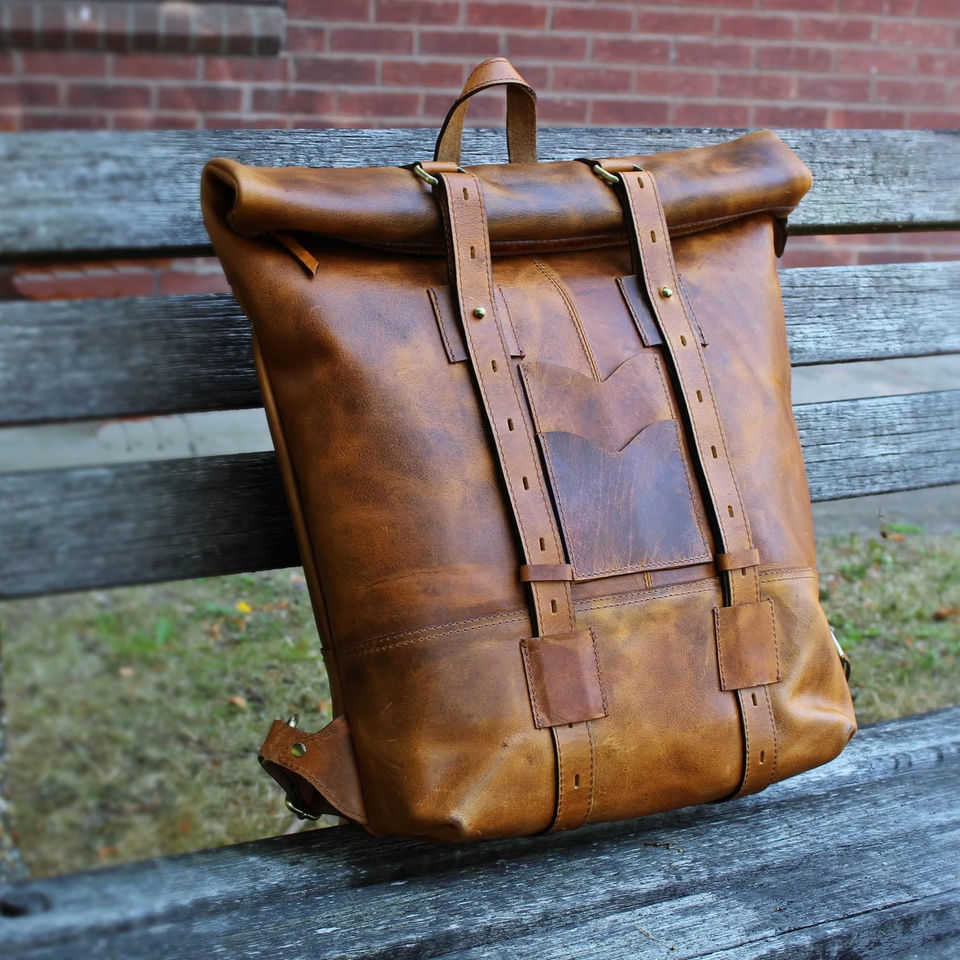 Mochila de cuero con cierre enrollable