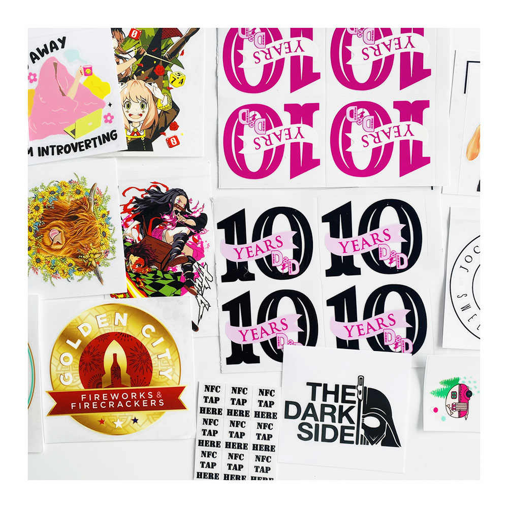 Nombre del producto:Pegatinas de ventana de calcomanía de transferencia de vinilo de coche troquelado decorativo, Impresión personalizada adhesivo fuerte troquelado DTF Copa UV 3D calcomanías de transferencia