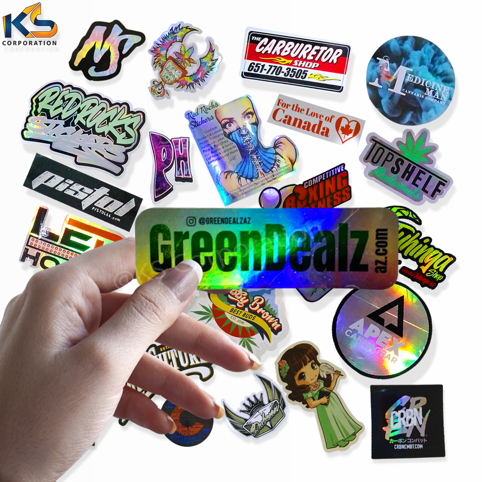 Pegatina de vinilo de holograma personalizada a prueba de agua, logotipo holográfico, impresiones en efecto arcoíris, tamaño decorativo y forma personalizable