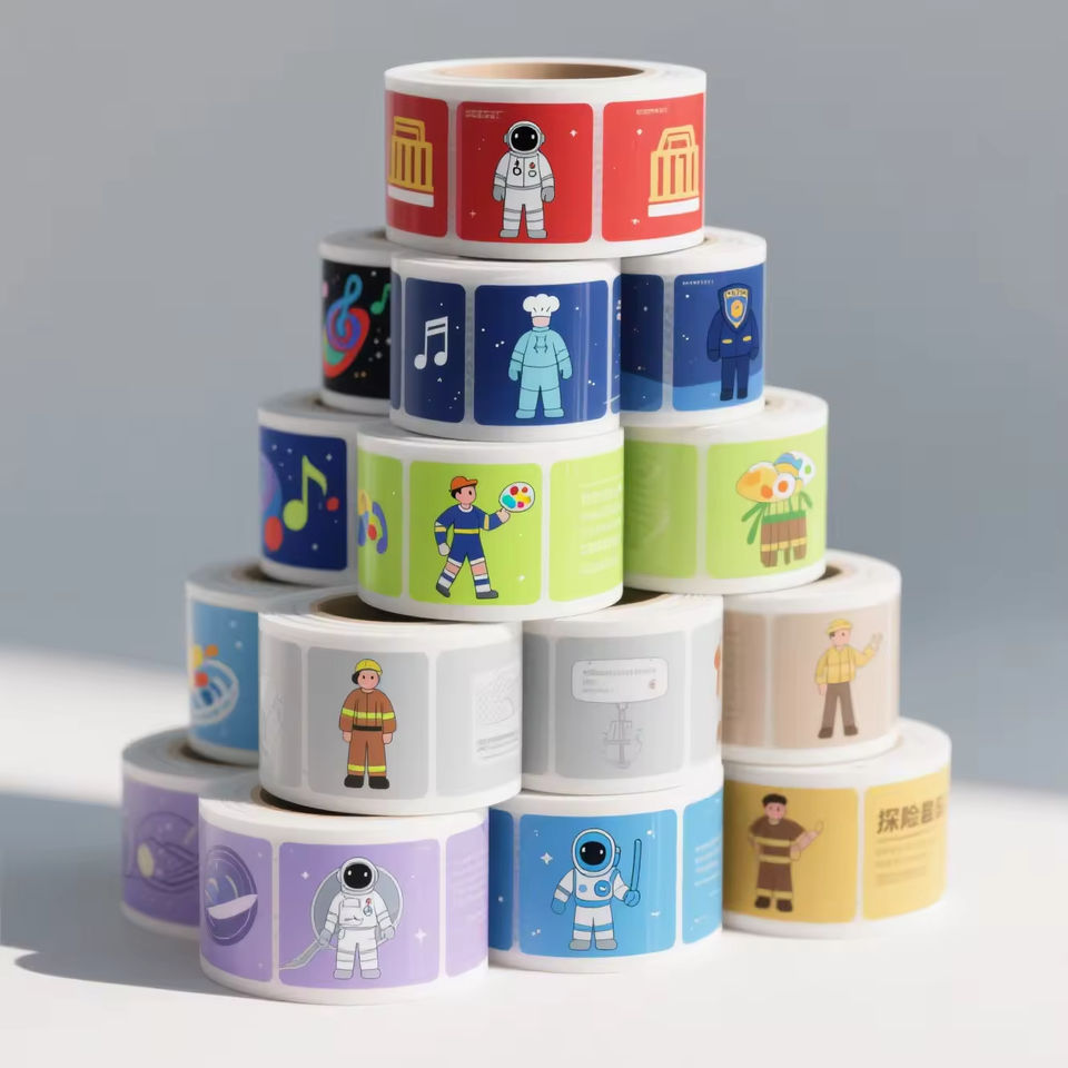 Antifalsificación, Anti-UV, Código de barras, Transpirable, Duradero, Ecológico, Termosensible, Resistente al calor, Holográfico, Resistente al aceite, Secado rápido, Reciclado, Reutilizable, Rasca y Gana, Rascable, Alta adherencia, Impermeable, Impermeable, EscribibleCaracterísticas