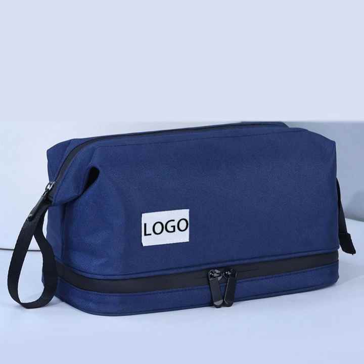 Bolsa de maquillaje impermeable de doble capa, bolsa portátil de mano, bolsa de almacenamiento de artículos de tocador y cosméticos de gran capacidad para hombres