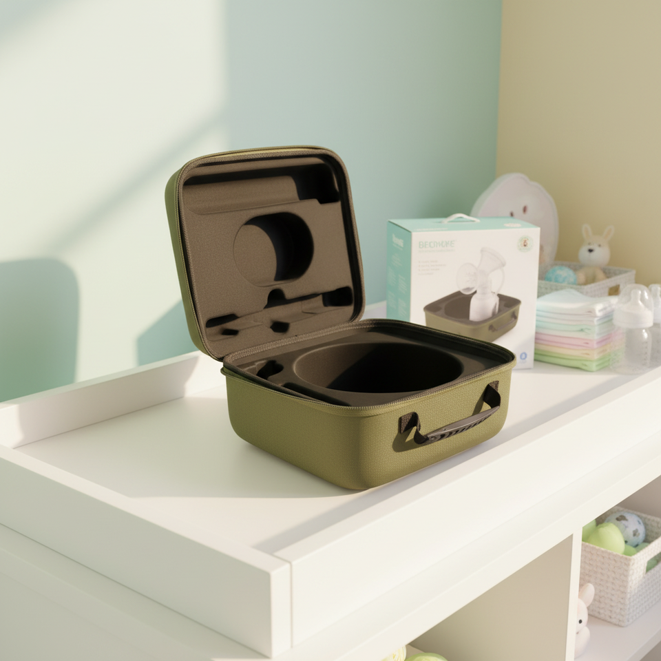 Estuche rígido impermeable de EVA con cremallera, color verde 26x24 cm, logo personalizado, antipolvo, portátil para viaje y camping