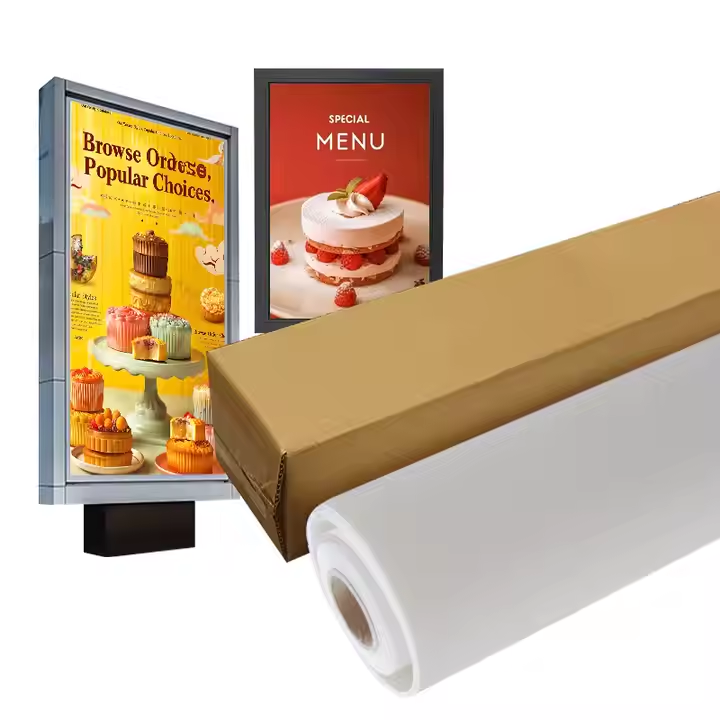 Película PET retroiluminada de impresión frontal eco-solvente impermeable 170gsm 130 micras para publicidad exterior lado mate/brillante