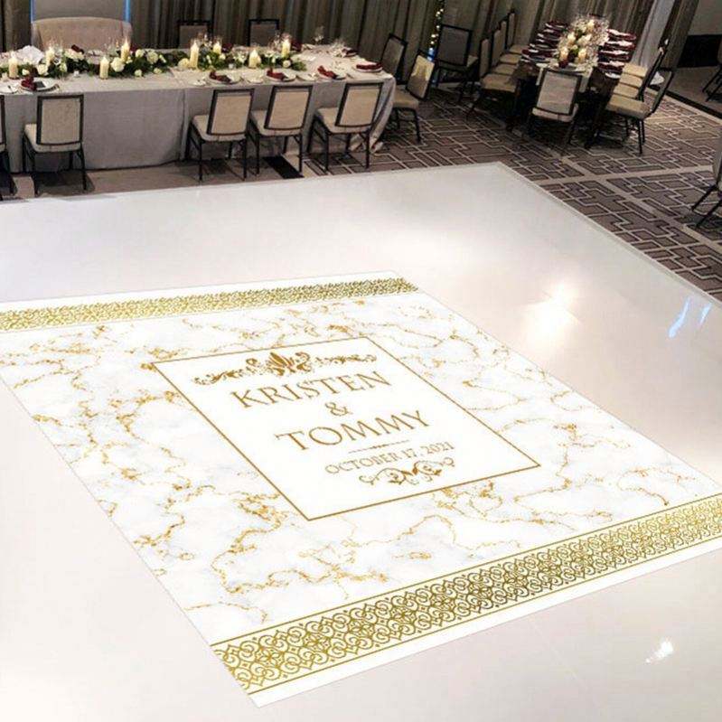 Pegatina Impermeable y Ecológica de PVC para Pista de Baile Rectangular para Bodas, Calcomanía Personalizada con Monograma Inicial