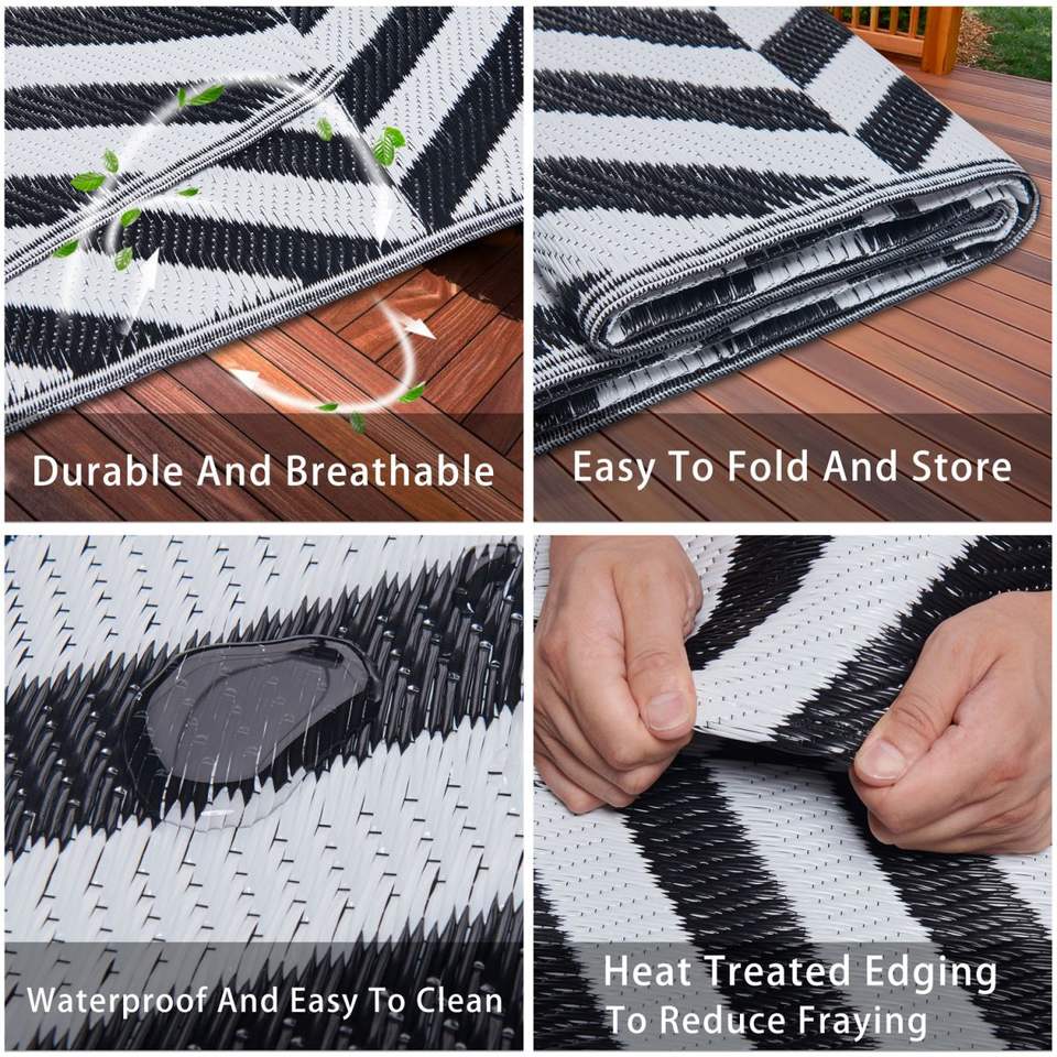 Alfombrilla de plástico reciclado plegable impermeable para exteriores, alfombrilla tejida de paja de plástico Anti UV para acampar al aire libre, alfombrilla personalizada para arena de playa, alfombrilla para RV