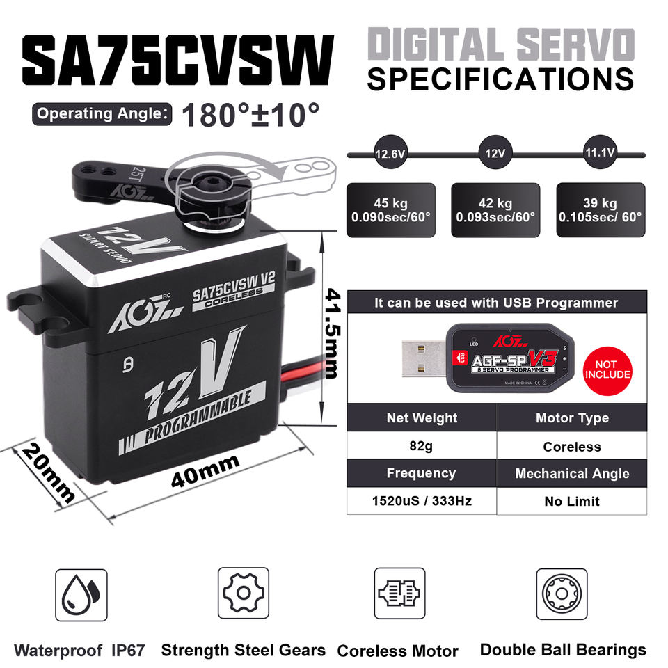 Controlador Digital Inteligente 3S Impermeable IP67 Sin Núcleo de 0.090s y 45KG para Piezas RC