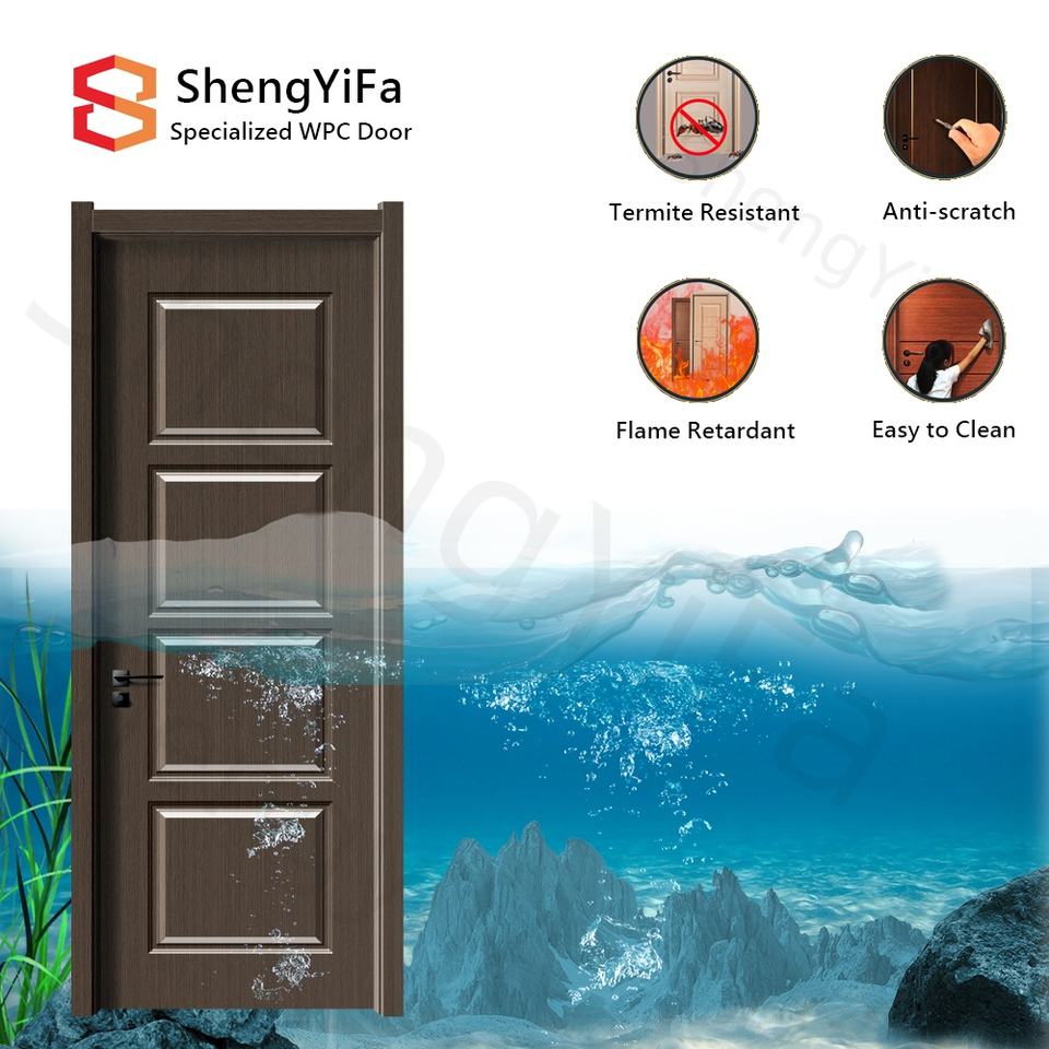 Columpio deslizante interior a prueba de agua Dormitorio compuesto WPC UPVC Diseño de puerta de madera con marco de puerta