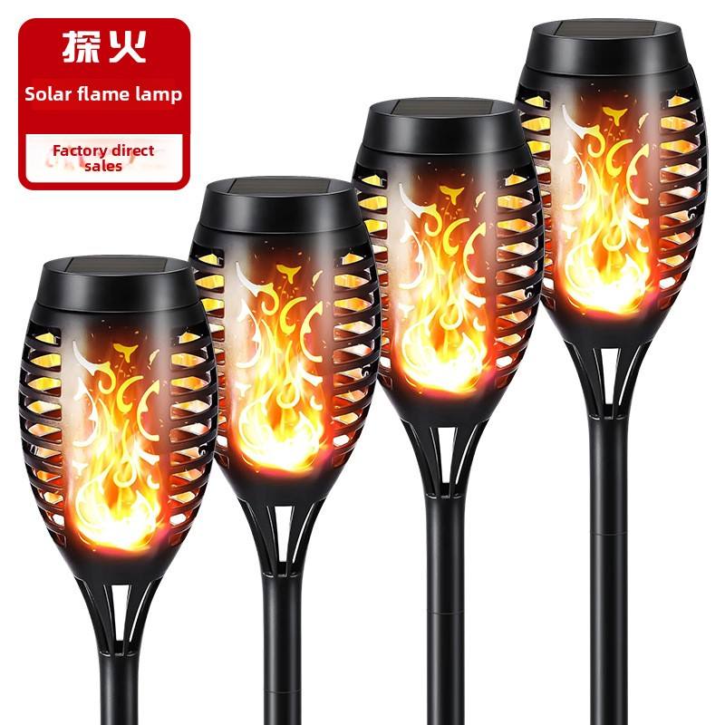 Antorcha LED impermeable para jardín, luz solar transfronteriza de 5W para Amazon, estaca de tierra para césped, luz de fuego IP65