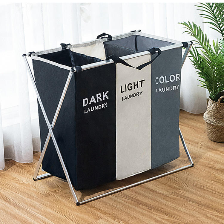 Cestas de Lavandería Impermeables con Tres Compartimentos Organizador de Lavandería con Estructura de Bambú Resistente para Ropa Sucia