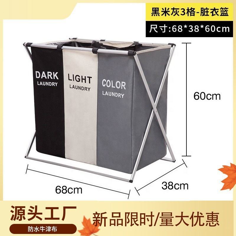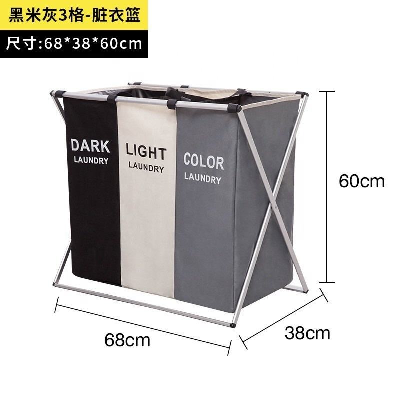Cesto de lavandería impermeable, organizador de lavandería dividido triple, marco de bambú resistente para ropa sucia