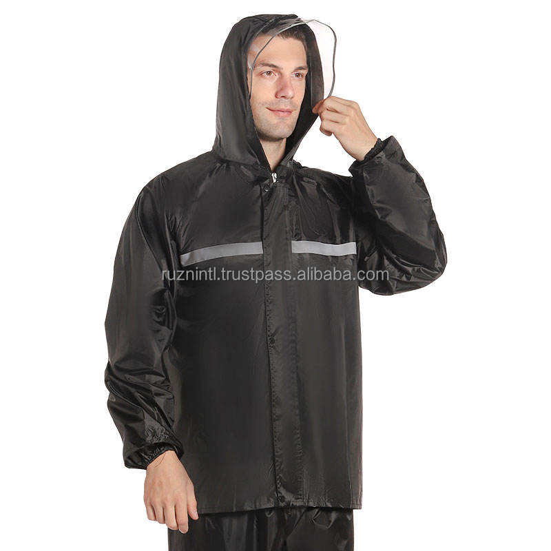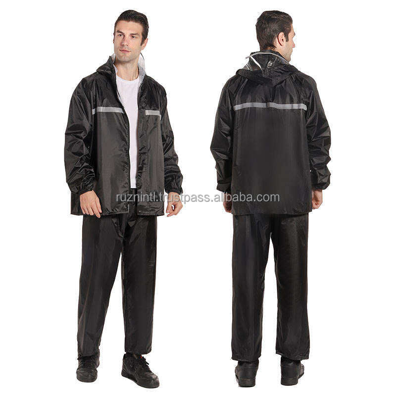 Traje Impermeable Ligero con Capucha, Tiras Reflectantes de Seguridad, Chaqueta y Pantalones Cortavientos para Trabajo al Aire Libre