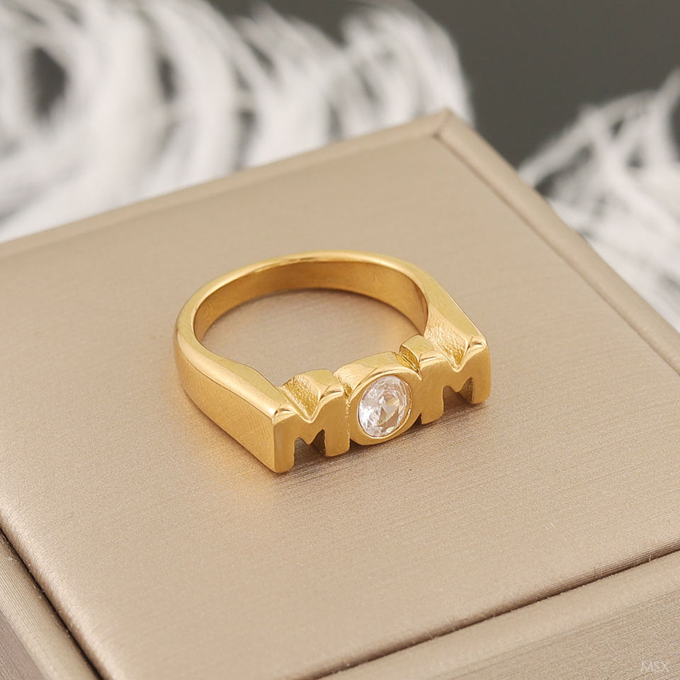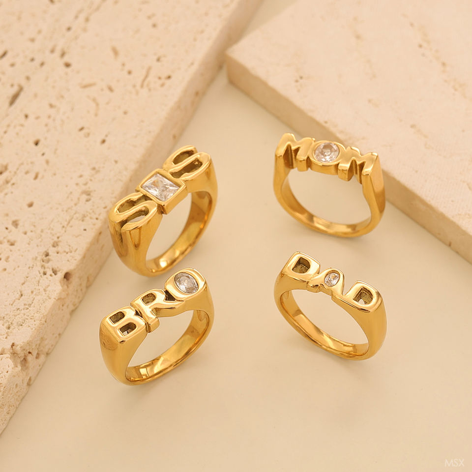 Anillos Impermeables para Madres con Letras MOM/DAD/SIS/BRO, Anillo Sello de Acero Inoxidable Chapado en Oro de 18k, Anillos de Lujo con Circonitas Cúbicas para Mujer