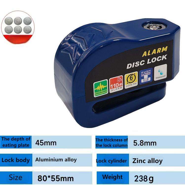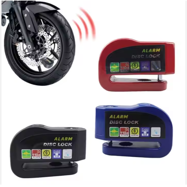 Bloqueo de alarma impermeable para motocicleta, bloqueo de seguridad antirrobo para bicicleta, bloqueo de freno de disco para bicicleta de montaña + bolsa + cuerda de recordatorio de 1,5 m