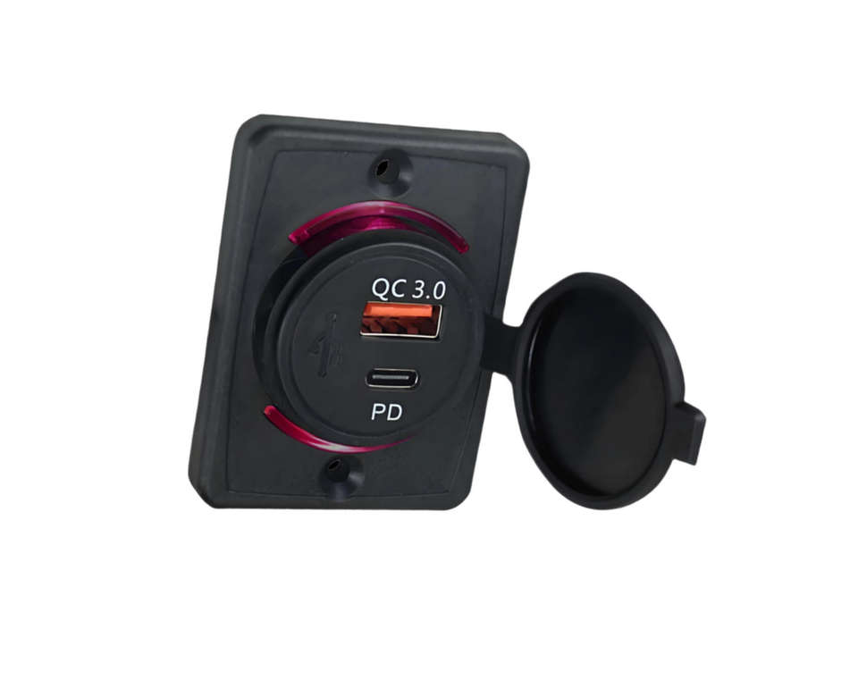 Cargador USB Impermeable para Motocicleta con Puertos Tipo-C + Tipo-A, Carga Rápida QC 3.0 y PD, Potencia Máxima de 20W, Uso Universal