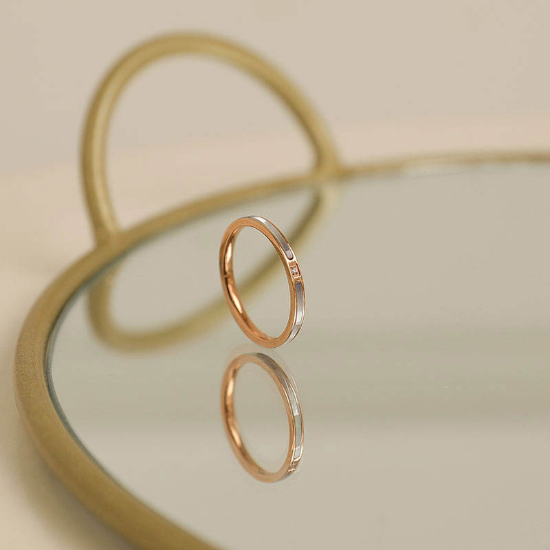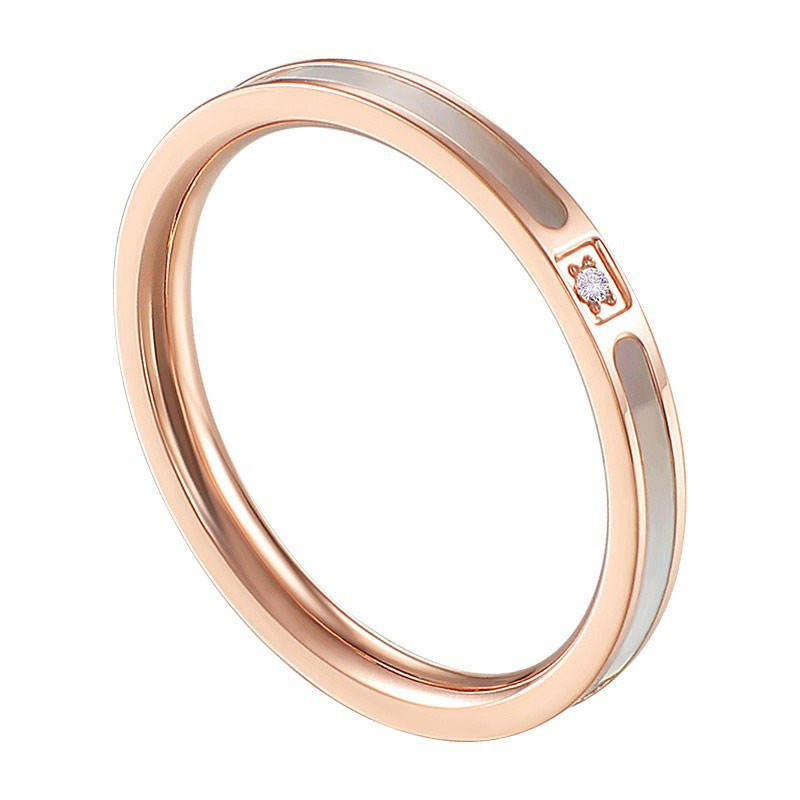 Anillos Impermeables que no se Deslustran, Chapados en Oro PVD de 14k y 18k, Anillo de Moda de Acero Inoxidable 316L con Diamantes y Concha Blanca para Mujer