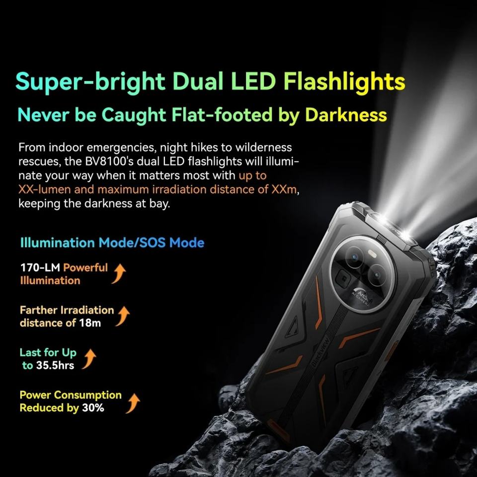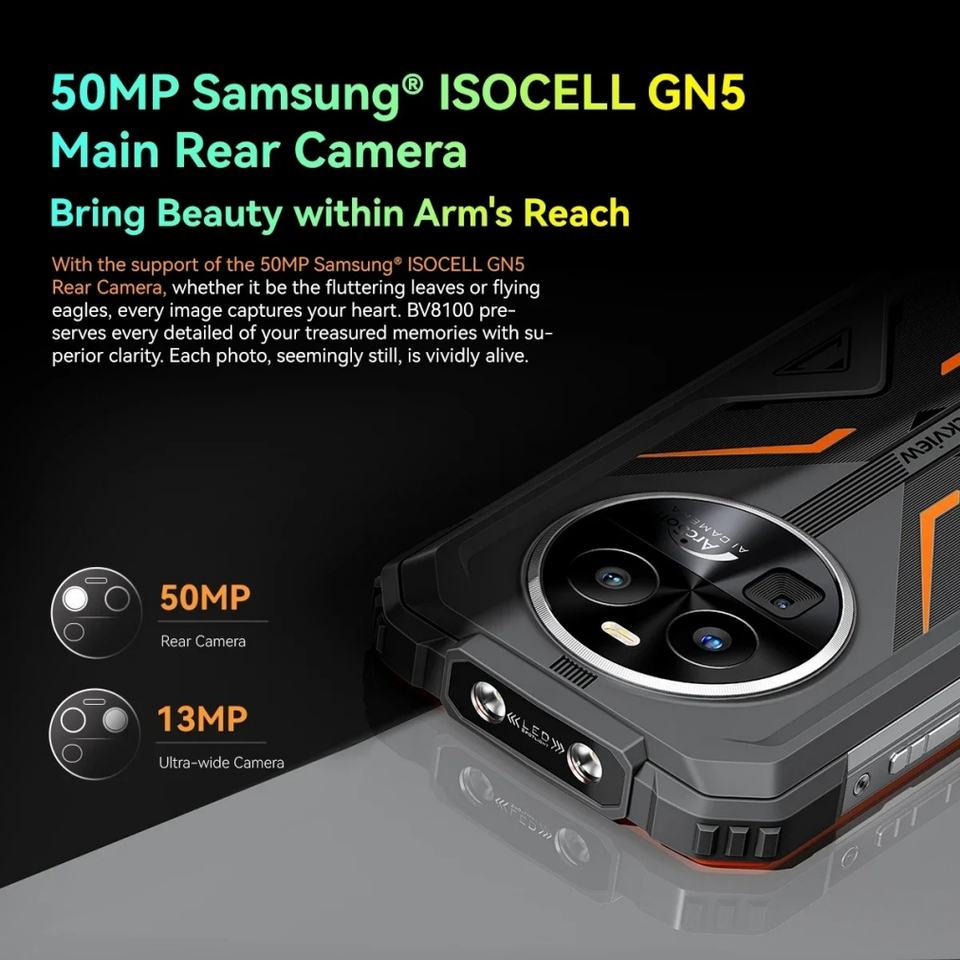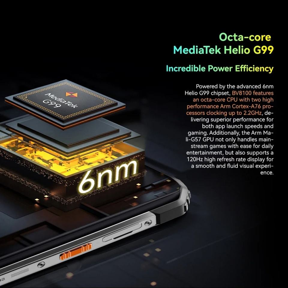 Smartphone Impermeable Octa Core Blackview BV8100 Android 16 256GB 5000mAh 45W Helio G99 120Hz Cámara de 13MP Doble SIM
