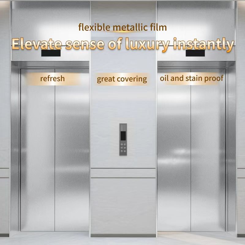 Rollo de Película Metálica Cepillada de Vinilo de PVC, Resistente al Agua, Resistente al Aceite, Panel, Ascensor, Pared, Muebles, Puerta, Armario, Decoración