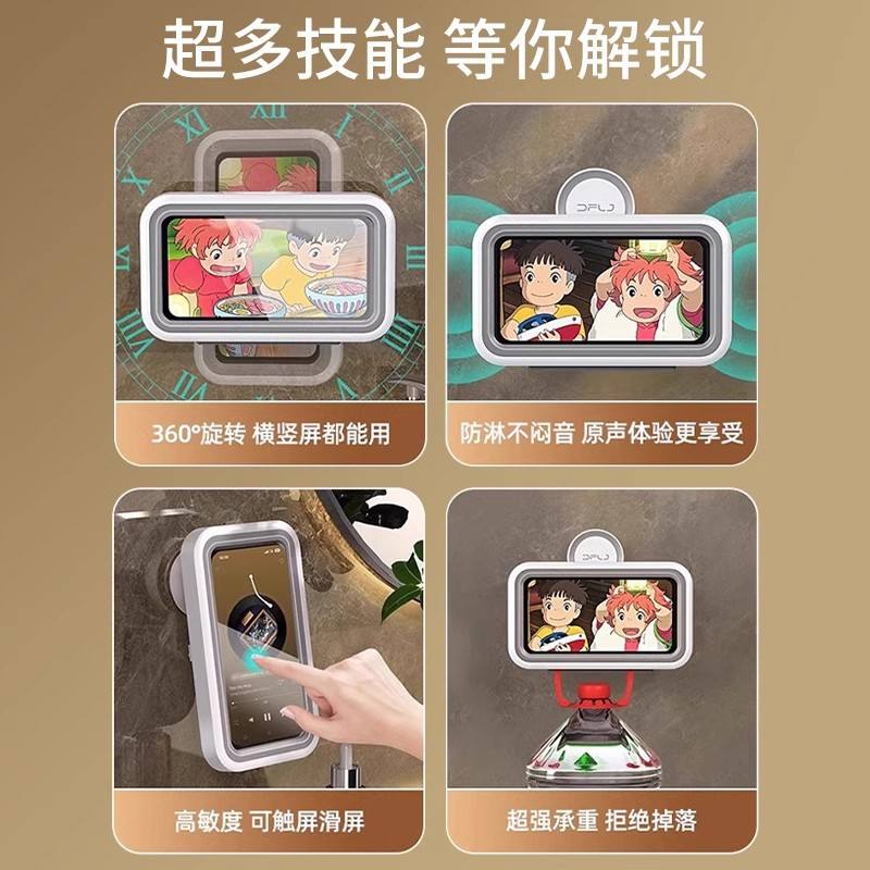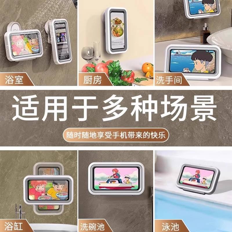 Soporte impermeable para teléfono de 7 pulgadas para uso en la ducha del baño con montaje con ventosa