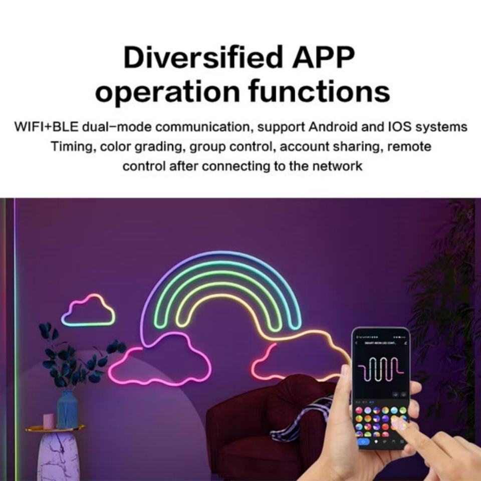 Tiras de Luces LED RGBIC Impermeables, Luces de Ambiente de Neón Multicolor con Control Inteligente por Aplicación y Voz para Decoración Interior y Exterior
