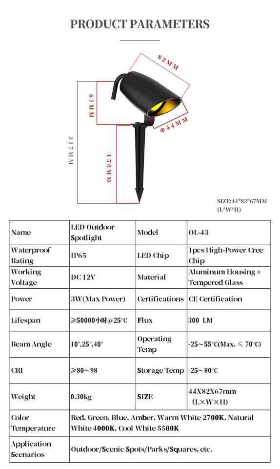 Luz LED Decorativa para Jardín, Impermeable IP65, OL-43, Aluminio, 25lm de Flujo Luminoso, CRI 95, Ángulo de Haz de 40°