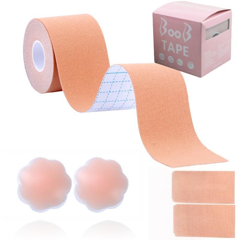 Waterproof Reusable 5cm 5m 2 PCS Adhesive Boob Tape with Nipple Covers Lifting Support Invisible Bra for Women