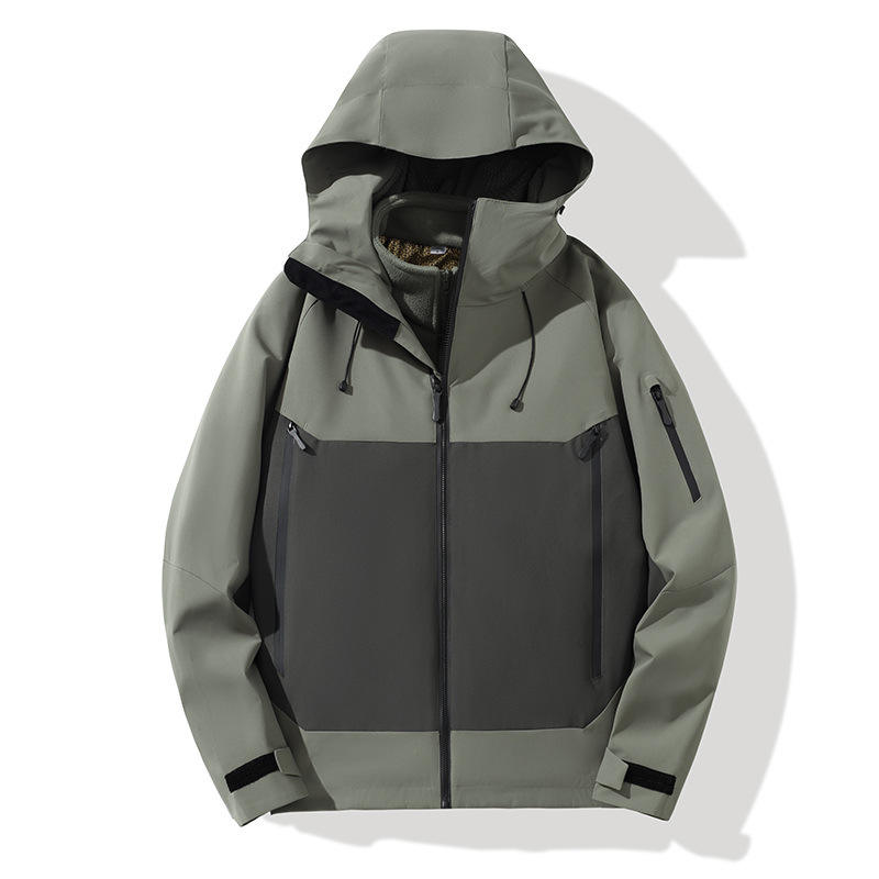 Waterproof Soft Shell 3 In 1 Windbreaker Jacket Men Workwear With Hood And Zipper Front For Outdoor Use