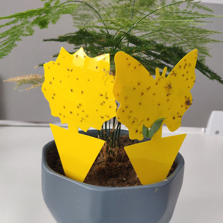 Trampa Adhesiva para Insectos de Material PC Sólido e Impermeable, para Plantas de Interior, Adhesivo en Forma de Mariposa Amarillo/Azul/Negro de Doble Cara para Jardinería