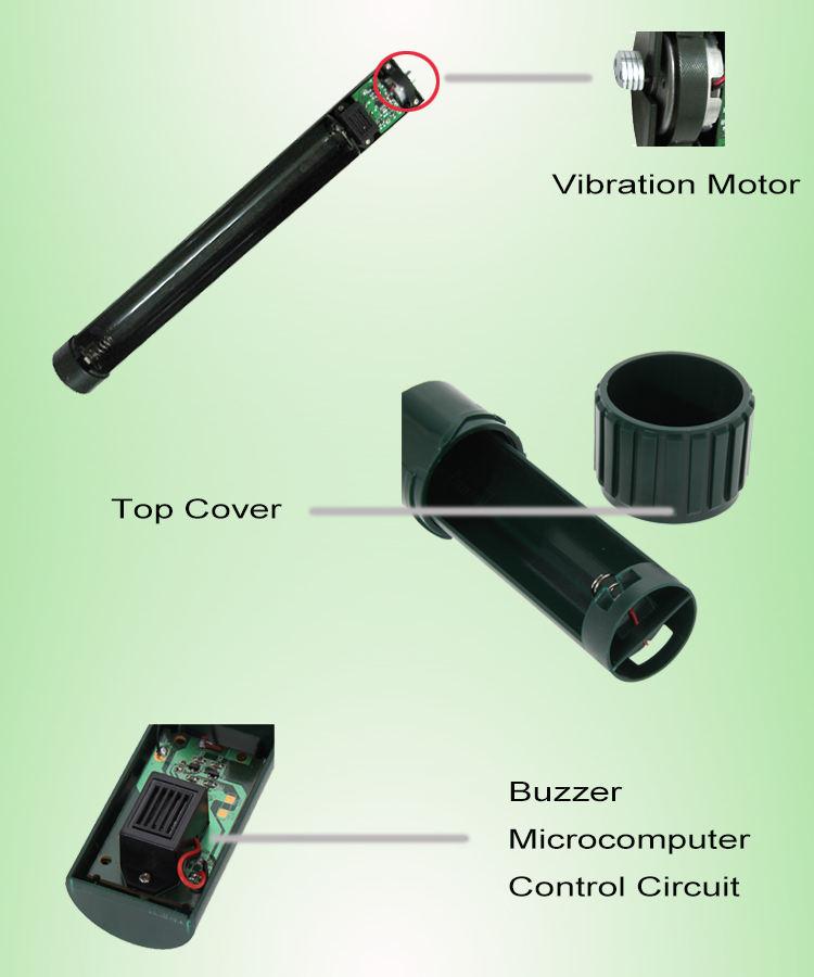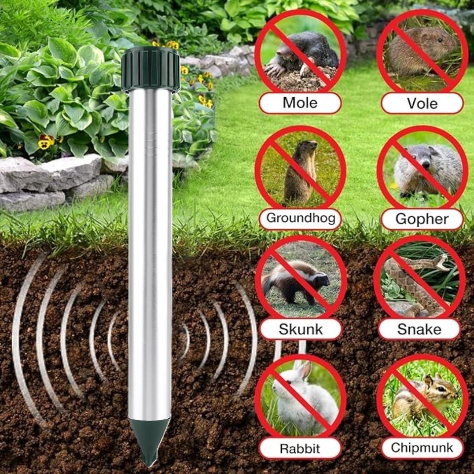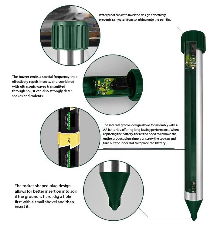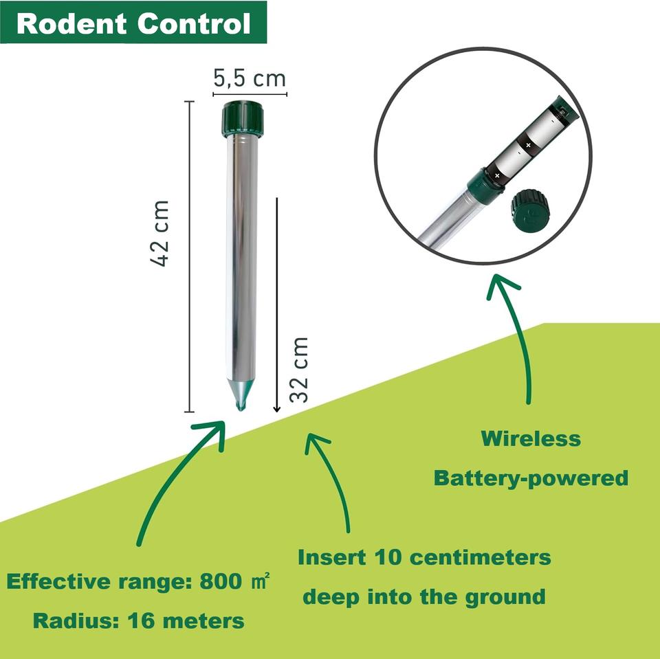 Ahuyentador de Ratones por Vibración Sónica, Resistente al Agua, con Estaca y Baterías, para Jardín, Patio, Granja, contra Topos, Ratazas, Gophers y Ratones