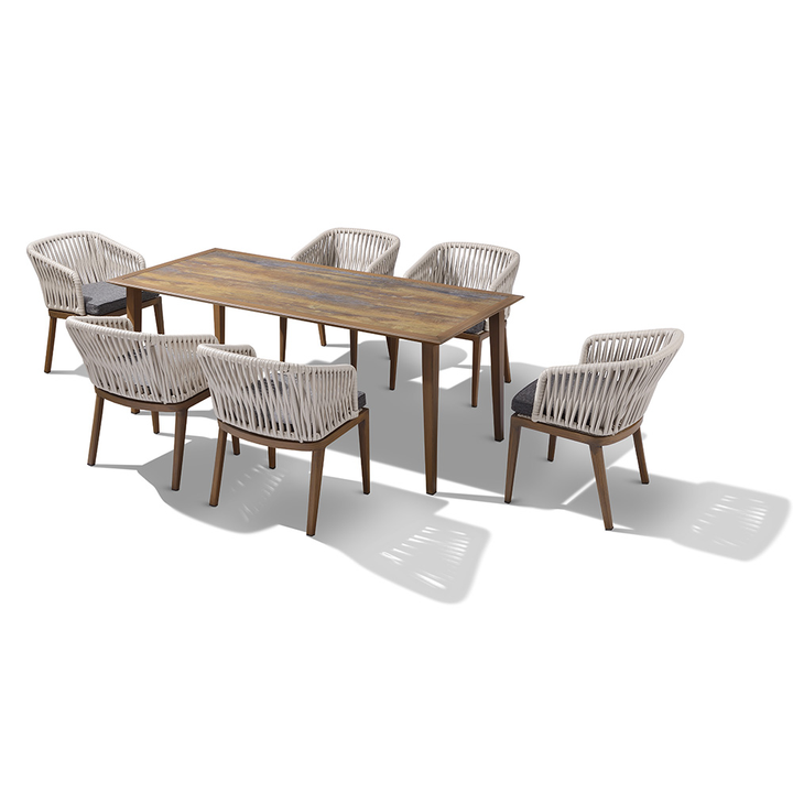 Juego de mesa y silla de comedor de mimbre/ratán sintético impermeable para jardín al aire libre para uso en el patio de Park Villa