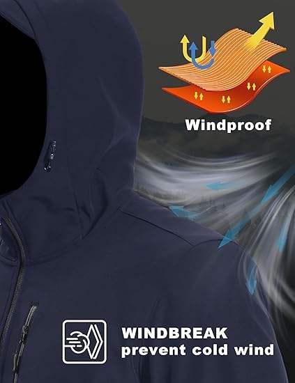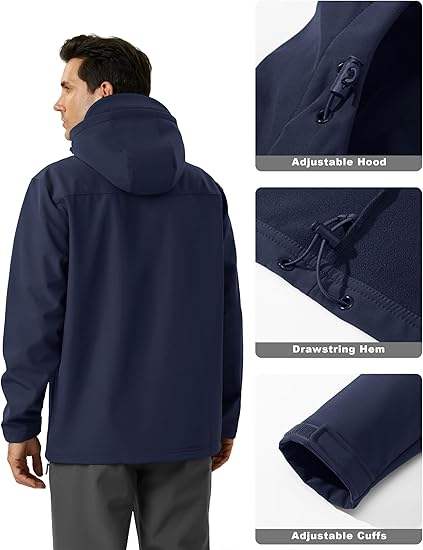 Chaqueta Táctica Impermeable de Lona para Hombre, Ligera, Forrada de Polar, con Capucha y Cuello Alto, Cortavientos para Senderismo y Trabajo al Aire Libre