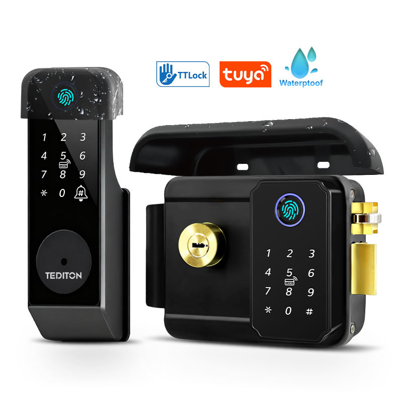 Cerradura de Llanta Electrónica Inteligente a Prueba de Agua Ttlock Tuya para Puertas Exteriores con Doble Huella Digital y Código Digital