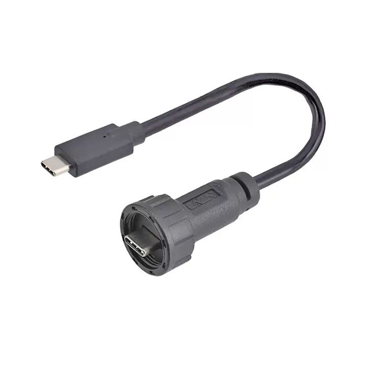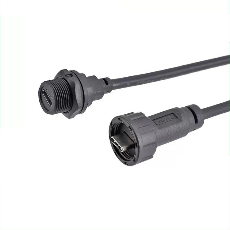 Conector USB Tipo C Hembra Impermeable para Montaje en Panel, Conector USB C Hembra de 2 Pines, Cable