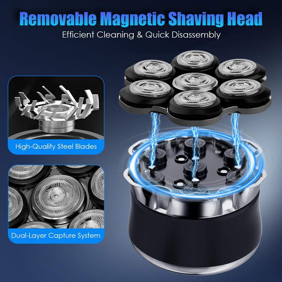 Afeitadora Eléctrica Impermeable para Hombres Calvos, con Carga Rápida y Pantalla LED, Kit de Afeitado de Doble Cuchilla Recargable